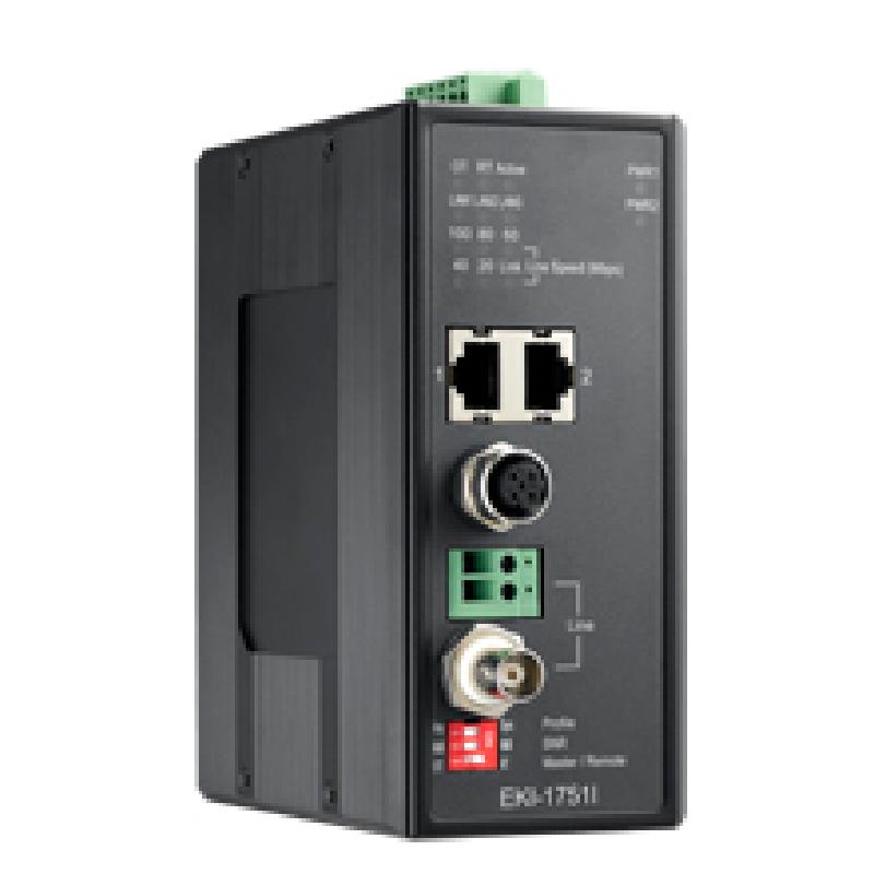 - The EKI-1751I is an Industrial Long Reach Ethernet Extender that utilize existing copper cabling infrastructure (via twisted pair or coaxial cable) to extend Ethernet to up to 2000 meters over VDSL2. The EKI-1751I is equipped with M12 Ethernet connector in addition to 2 x RJ45 Ethernet connectors to offer the most flexibility possible to your project needs. M12 connector adds the option to deploy these easy to use plug-n-play devices into a more secure environments where reliability is the utmost priority. The EKI-1751I is recommended to be used in pairs over a single pair of telephone-grade unshielded twisted pair (UTP) wire or a coaxial cable. EKI-1751I uses IP30 aluminum enclosures, which is ideal for industrial applications. It is also capable of handling wide temperatures range from -40 to 75 °C. Its convenient DIP switch provides easier configuration options to meet many deployment needs. Installer can select VDSL2 'Band-Plans' (Asymmetric or Symmetric) or SNR margin (6dB or 9dB). With abundant LEDs, it offers quick snapshot of status and diagnostics.