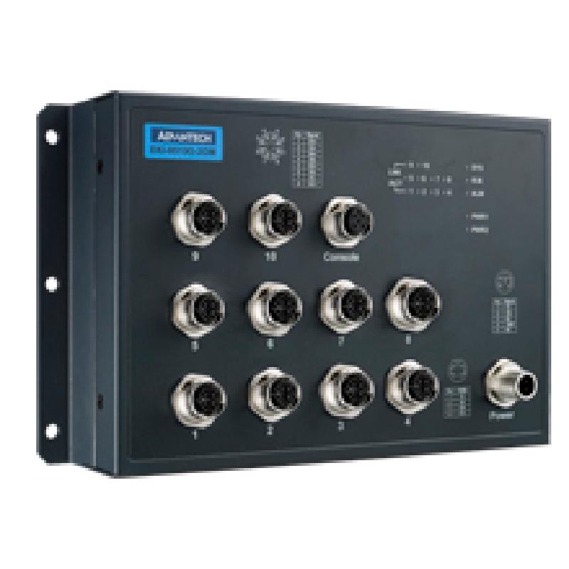 - The EKI-9500 series switch is designed for railway application with rugged and high EMC performance, being suitable for networking solution for rolling stock and wayside applications. The EKI-9500 series provides M12 connectors for Ethernet/ console/ relay/ power-input connections to ensure tight & robust connectivity, and thus to guarantee reliable operation against environmental disturbances such as vibration and shock on train. The EKI-9510G-2GMH & EKI-9510G-2GML are unmanaged Ethernet switch that provide 8 x Gigabit Ethernet M12 X-code interface. Each of them also provides 2 x Gigabit Ethernet M12 X-coded ports with Bypass function to increase the reliability of the network. The EKI-9510G-2GMH/ L features a "flat" design which can be easy deployed with its slender size and make network deployment easier in crowded carriage/ cabinet.