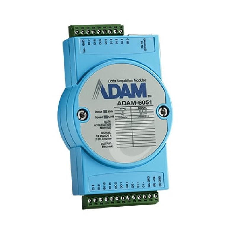 ADAM-6051提供12路數(shù)字輸入,2路數(shù)字輸出,并有2000VRMS的絕緣保護(hù)的計數(shù)器。這個混合功能模塊建立在以太網(wǎng)端口和網(wǎng)頁之上。
